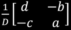 D = ad - bc != 0 이러면 역행렬 존재하는 거 0이면 역행렬이 없다는 거
