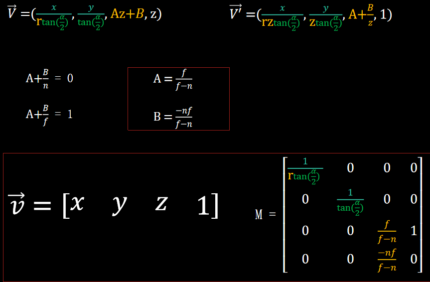 A, B값을 행렬에 넣어주면 프로젝션 행렬이 완성된다.
