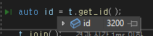 만약 여기서 auto id = t.get_id(); 로 id를 체크하게 되면, id 가 0인 상태로 들어오게 될거야 .