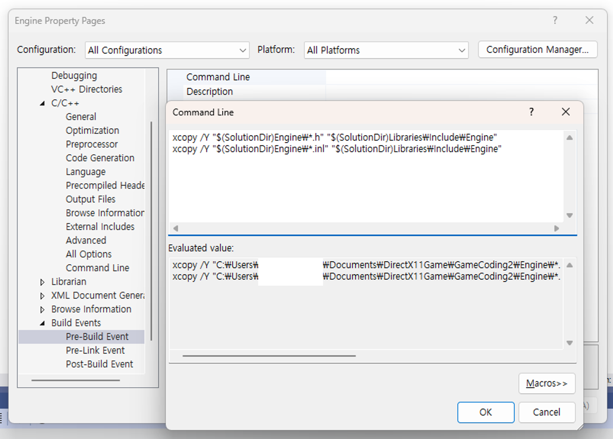 그리고 Engine의 헤더파일들이 Libraries/Include/Engine 에 옵션으로 들어가길 원한다면
