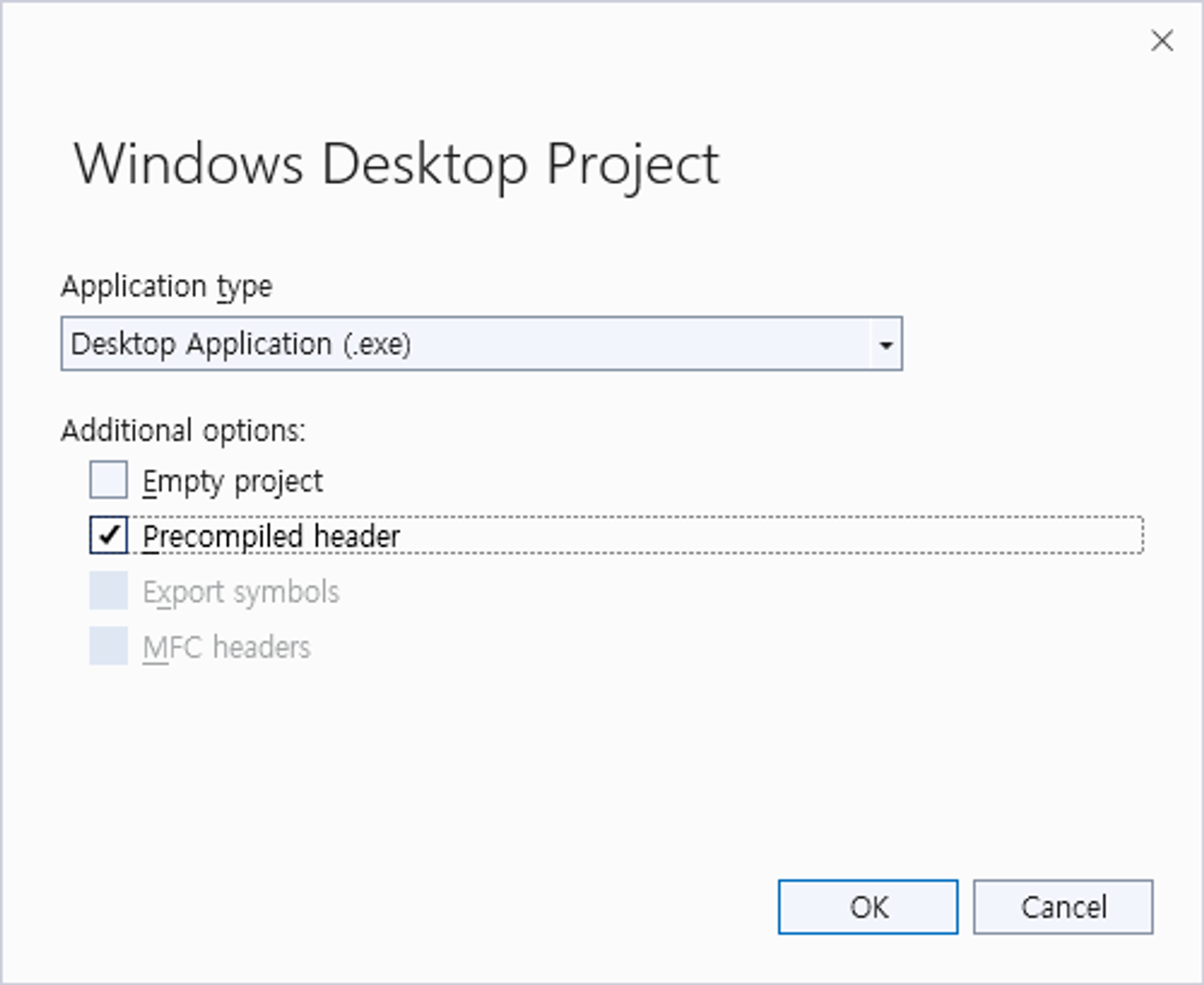 Precompiled Header는 이미 되어 있다.