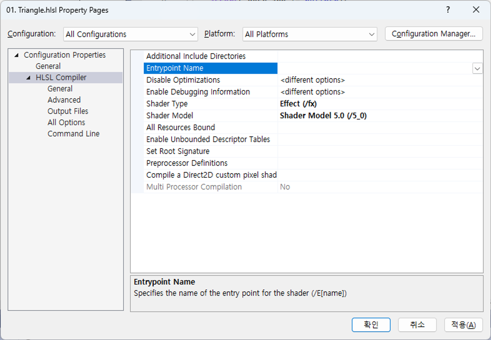 01. Triangle.hlsl 파일의 확장자를 .fx로 수정한다.