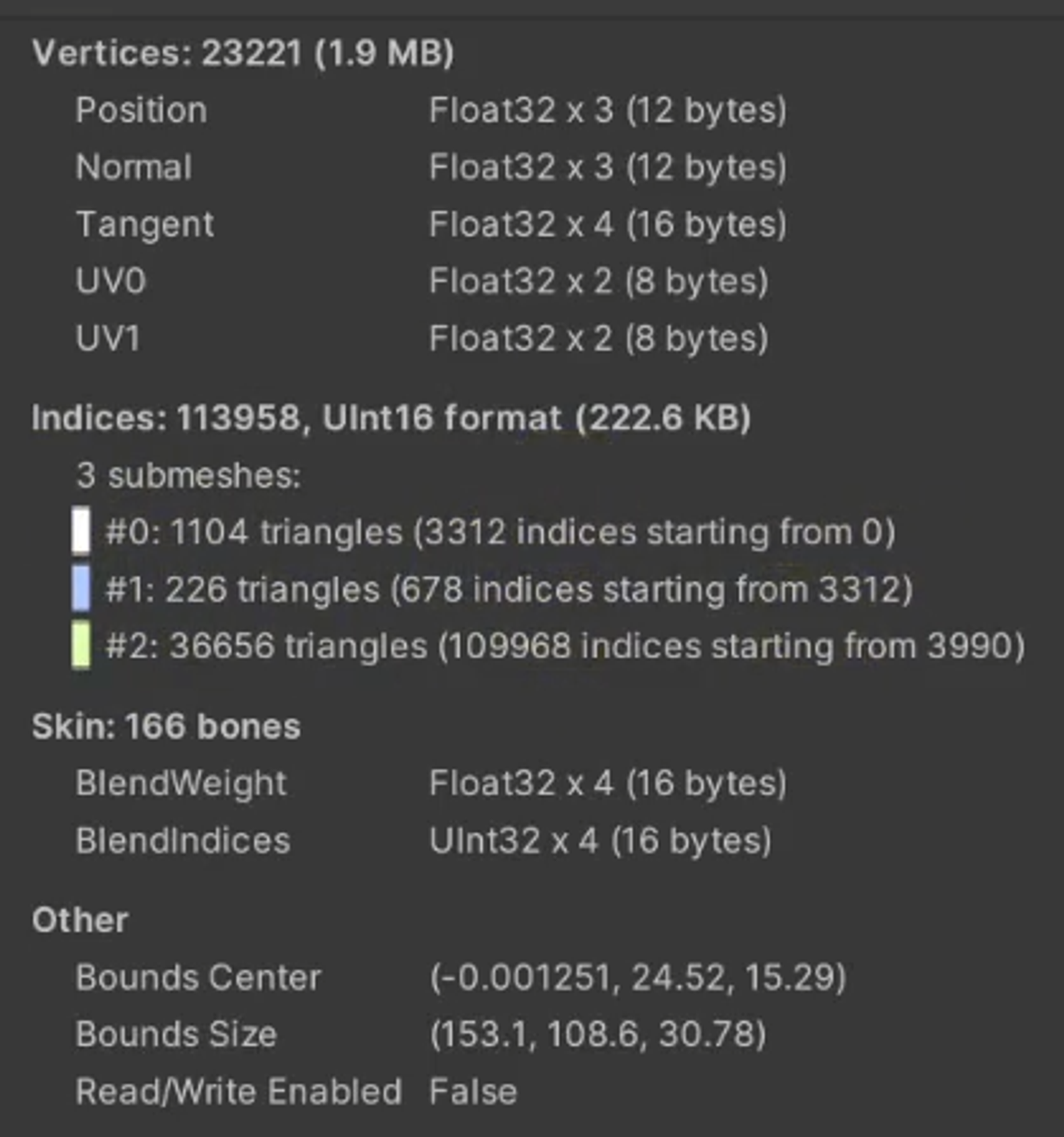 // 주의할 점은 submeshes를 3개짜리를 뭉쳐서 관리하다 보면 인덱스 번호가 겹치면 안된다.