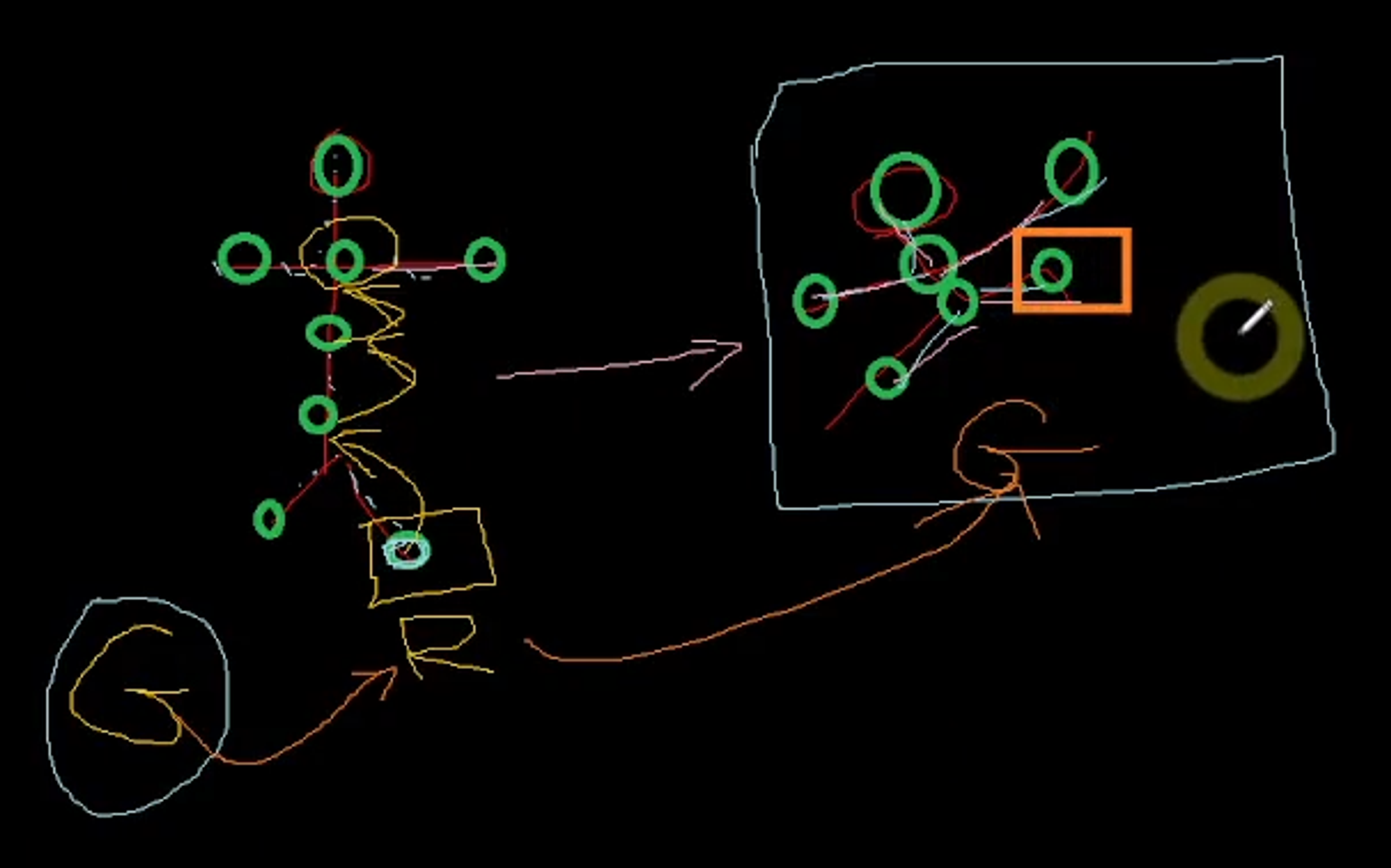 뼈대랑 정점을 구분해야 한다. 여기서는 정점이 아니라 관절을 얘기하고 있다. 만약에 Relative 좌표를 기준으로 발바닥을 기준으로 계산을 했을 때 Relative 에서 빠져 나와서 Global 좌표계로 변하고 싶다면 SRT를 곱해서 부모까지 기어 올랐다는 걸 알 수가 있다.