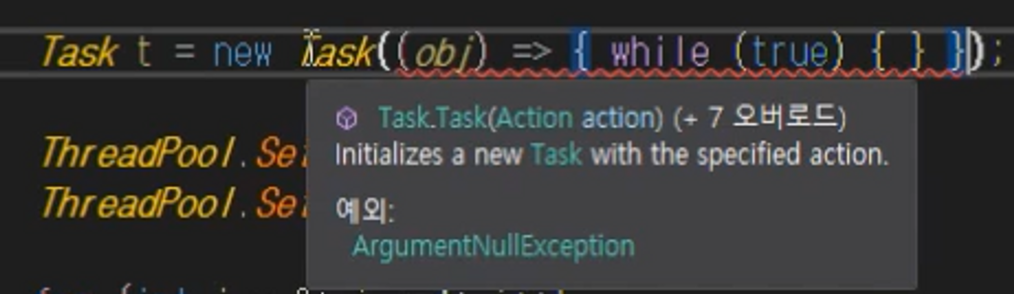 // ThreadPool.QueueUserWorkItem((obj) => { while (true) { } });