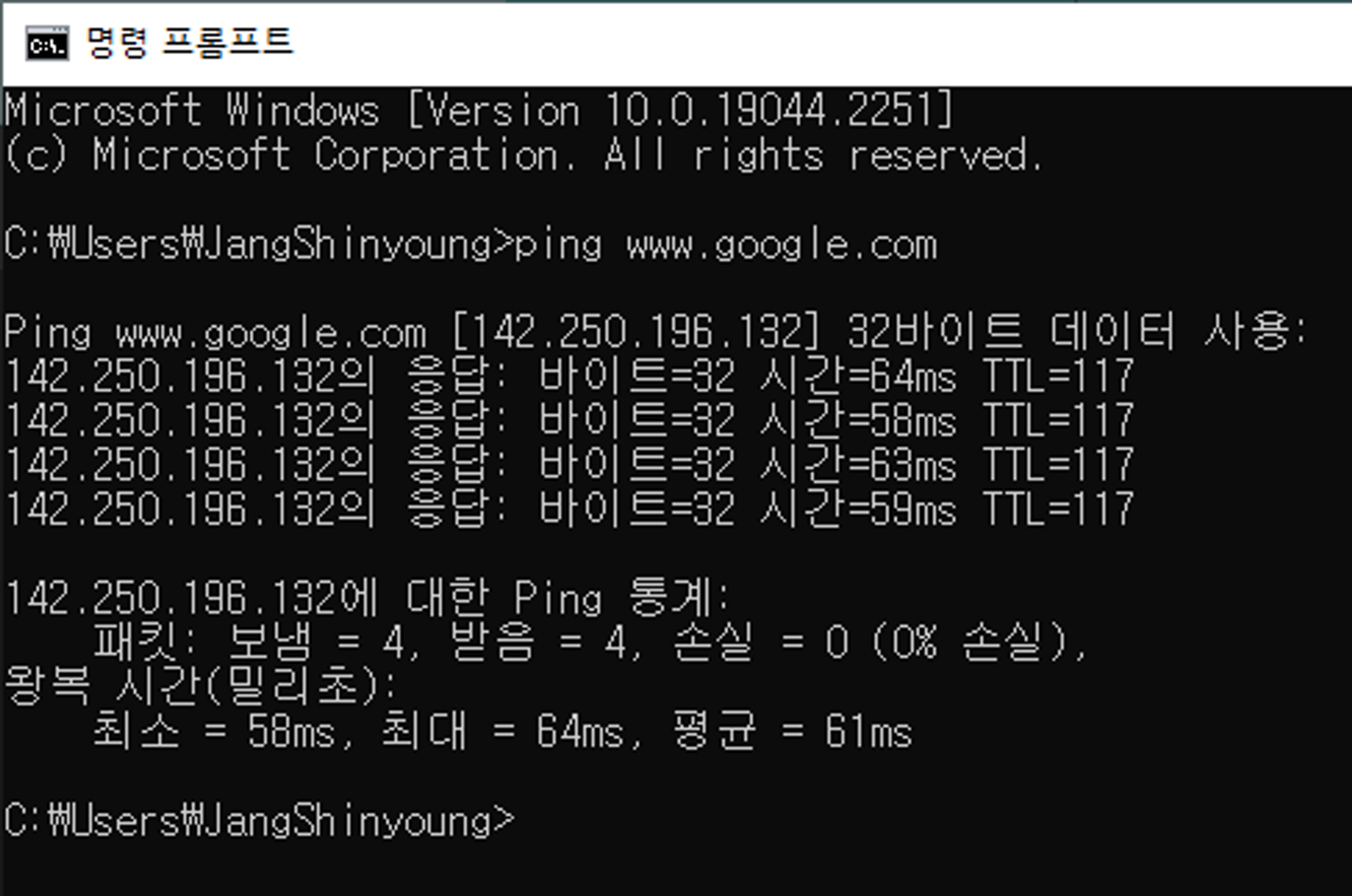 cmd를 열어서 ping www.google.com을 입력해보자.