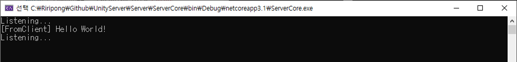 Console.WriteLine("Listening..."); // 지금 영업중이야.