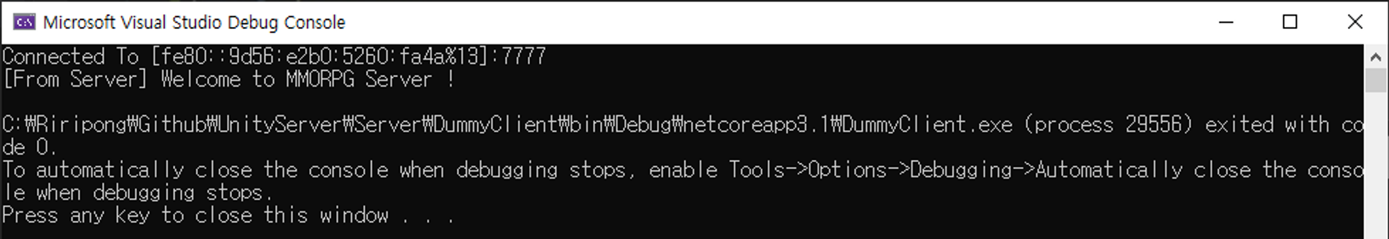 DummyClient.exe를 실행해보면