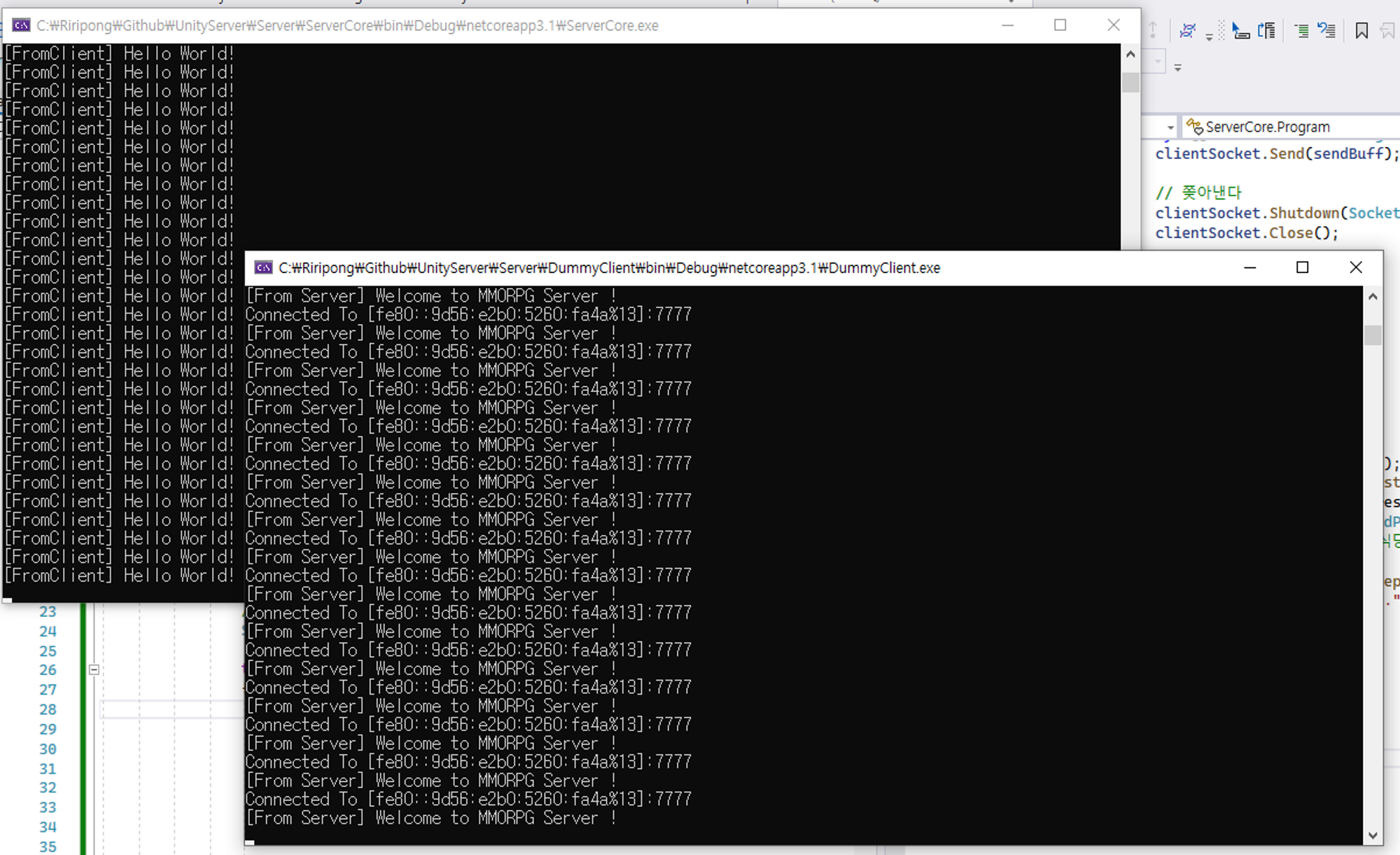 DummyClient에서 계속 반복하게 테스트 해보자.