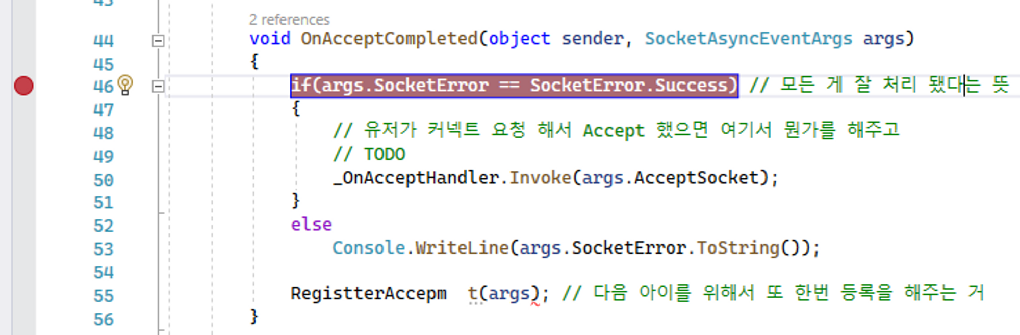 if(args.SocketError == SocketError.Success) // 모든 게 잘 처리 됐다는 뜻