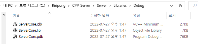 아래에 C:\Riripong\CPP_Server\Server\Libraries\ 가 추가된다.