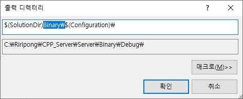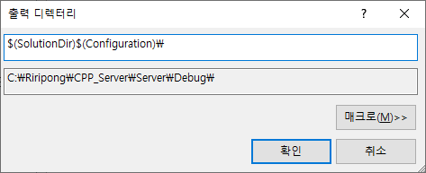 SolutionDir는 각각 환경에 맞게 변화 됨. 여기서 SolutionDir는 C:\Riripong\CPP_Server\Server로 변환이 되고