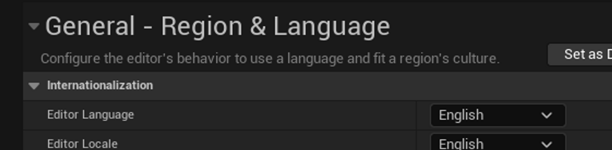 edit→editor preference→General-region&Language에서 English로 설정을 합니다.